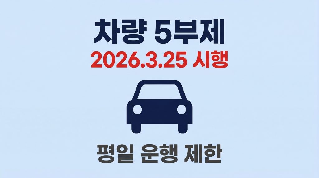 차량 5부제는 자동차 번호판의 끝자리 숫자를 기준으로 평일 5일 중 하루 운행을 제한하는 에너지 절약 제도입니다. 주말과 공휴일에는 적용되지 않으며, 월요일부터 금요일까지 해당 번호 차량의 운행을 자제하도록 하는 방식으로 운용됩니다.